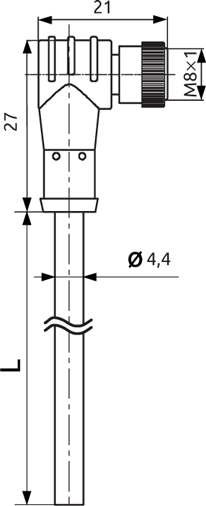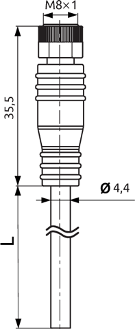WS08-4S-2V Кабель электрический с разъемом M08x1 (розеточная часть, прямой разъем, 4 контакта, ПВХ, 2 метра, IP67)