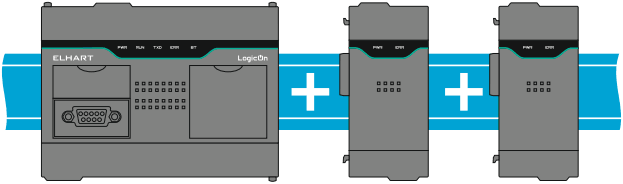 Модули расширения LogicOn выпускаются в 7 модификациях с разным набором входов и выходов. Представлены как дискретные, так и аналоговые модули. К одному контроллеру LogicOn может быть подключено до 8 модулей по правосторонней шине.
