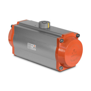 Корпус пневмопривода двойного действия представляет собой полый алюминиевый цилиндр, на обоих концах которого установлены торцевые заглушки. Внутри пневмопривода расположена воздушная камера, два поршня и вал-шестерня. Пневмопривод имеет два порта для подачи управляющего воздуха (имеется возможность установки непосредственно на пневмопривод пилотного (управляющего) клапана с присоединением по стандарту NAMUR.)