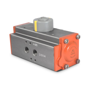 PNA-SA-040 Пневмопривод четвертьоборотный, диаметр 40 мм, ISO 5211 F03/F05 (11 мм), порты подачи воздуха: 2xG 1/4'' (NAMUR), одностороннего действия, алюминий