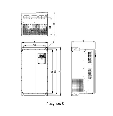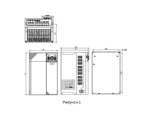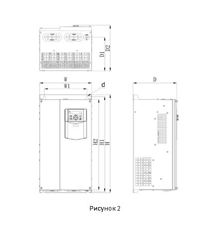 | Модель ПЧ | W | W1 | H | H1 | H2 | D | D1 | D2 | d | Рис. |