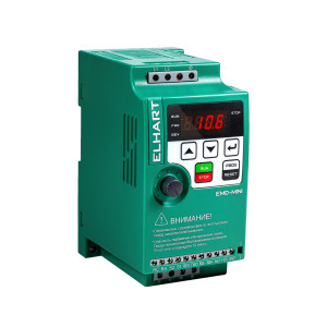 EMD-MINI – 022 A Преобразователь частоты ELHART (для однофазных двигателей, 2,2 кВт, 16А, 220В, встр. ПИД-регулятор, 4 дискр. Выхода , 1 дискр. Выход (реле),1 аналоговый вход 4-20мА/0-10В, поворотный задатчик частоты, RS-485 Modbus RTU, монтаж на DIN-рейку)