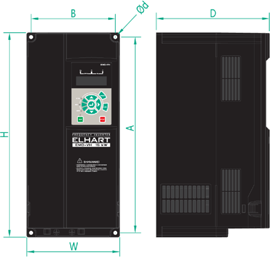 EMD-VH – 0185 T Преобразователь частоты ELHART, векторная серия (18,5кВт, 37А, 380В, векторное и U/f управление, встроенный пульт (поддержка внешнего пульта), встроенный ПИД-регулятор, 1 слот для плат расширения, RS-485 Modbus RTU), серия EMD-VH