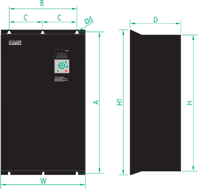 EMD-VH – 3150 T Преобразователь частоты ELHART, векторная серия (315кВт, 600А, 380В, векторное и U/f управление, встроенный пульт (поддержка внешнего пульта), встроенный ПИД-регулятор, 1 слот для плат расширения, RS-485 Modbus RTU), серия EMD-VH