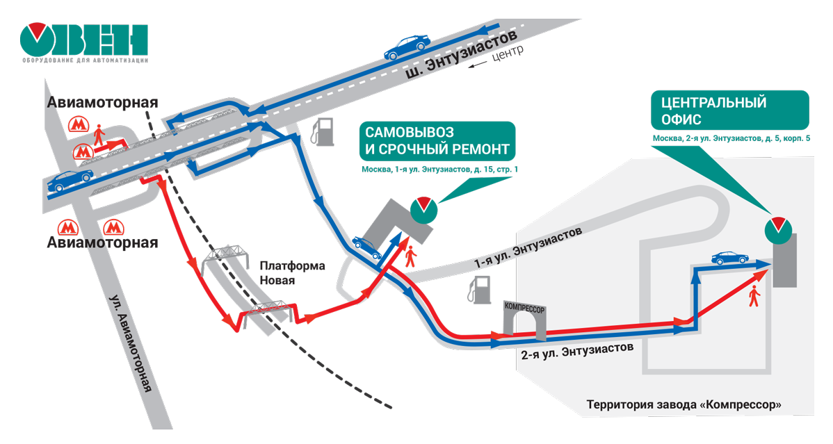 С 13 февраля 2017 года самовывоз продукции ОВЕН осуществляется на новой площадке по адресу: Москва, 1-я ул. Энтузиастов, д. 15, стр. 1.