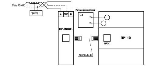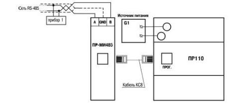 Внимание! Работа приборов ПР110 с прибором ПР-МИ485 возможна только, если прибор ПР110 имеет версию внутреннего программного обеспечения не ниже х.80.