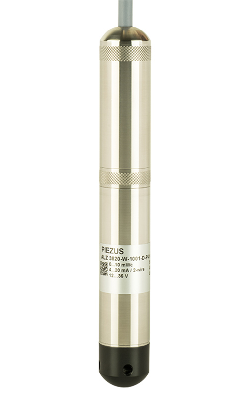 Погружной преобразователь давления ALZ 3820 с погрешностью до ≤0,2% от диапазона измерений на основе сенсора с разделительной мембраной из нержавеющей стали, для измерения уровня сред, неагрессивных к нержавеющей стали и стандартным материалам уплотнения (например, вода, некоторые виды топлива). В датчике реализовано разъемное кабельное соединение, облегчающее обслуживание и замену датчика на объекте. Опционально оснащается температурным датчиком Pt100.