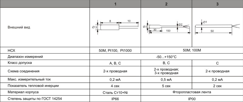 Чувствительные элементы изготавливаются в металлостеклянном корпусе (исполнение 1) и в бескорпусном исполнении с изоляцией фторопластовой лентой.