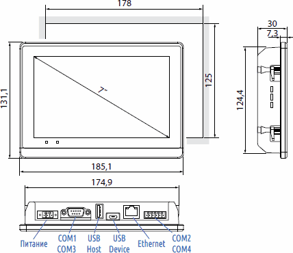 - Функция виртуального СОМ-порта позволяет использовать панель в качестве преобразователя Ethernet: RS-232 / RS-485.