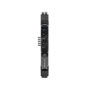 - Монтаж на шину T-BUS, через совместимую с ПЛК и периферийными модулями серии Alpha-X колодку, что упрощает сборку и обслуживание распределенных систем автоматизации.