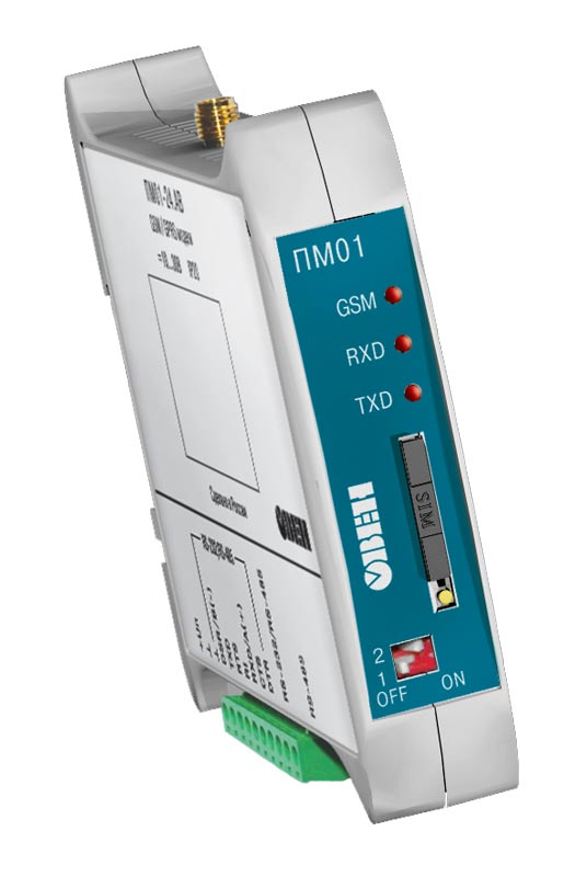 GSM/GPRS модем ОВЕН ПМ01 предназначен для удаленного обмена данными через беспроводные системы связи стандарта GSM с оборудованием, оснащенным последовательными интерфейсами связи RS232 или RS485.