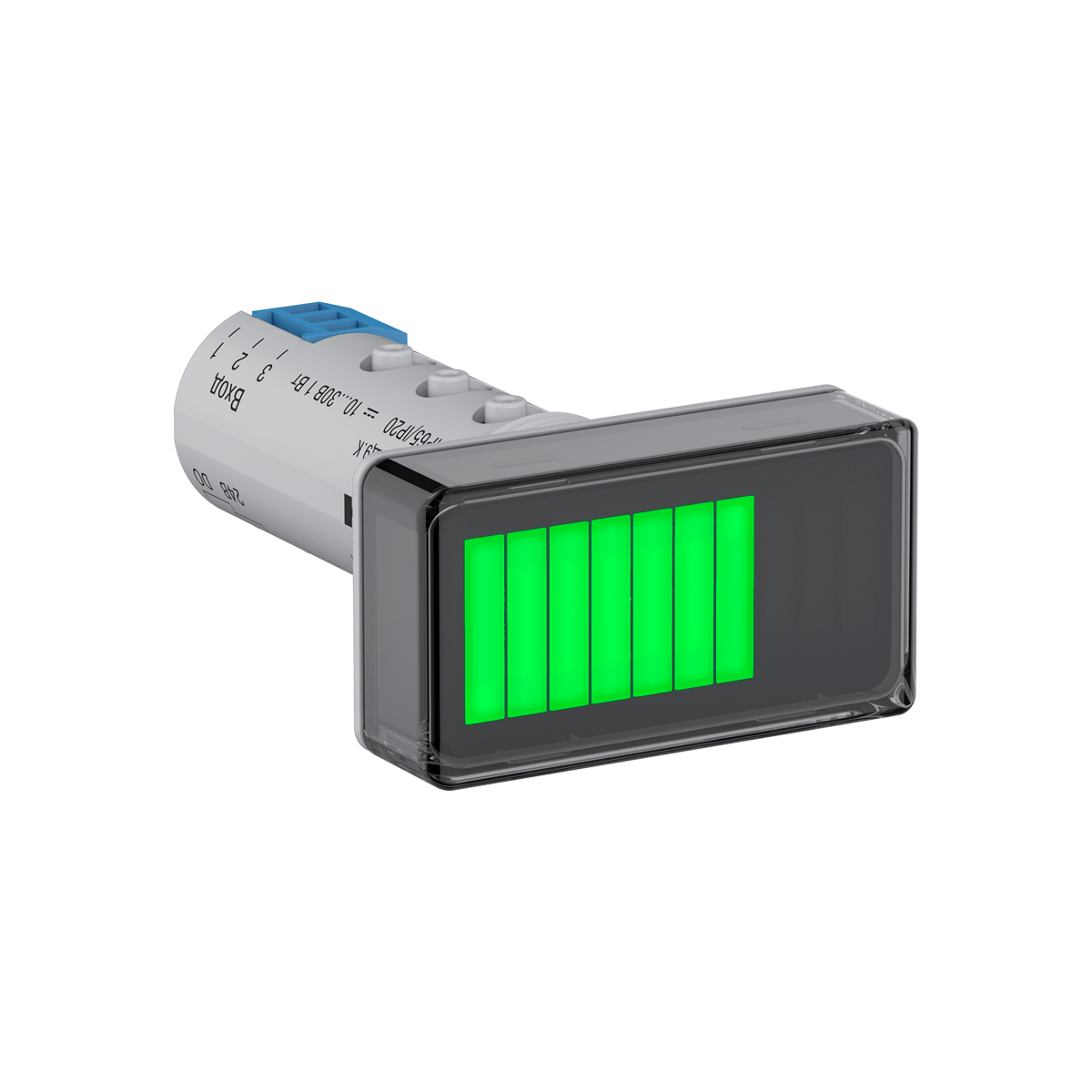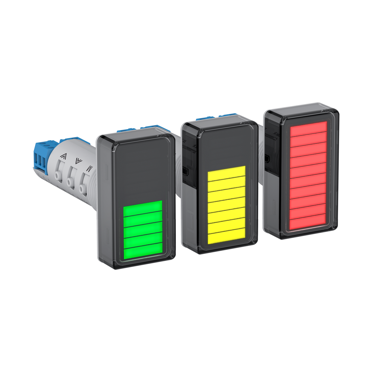 Типовые применения с качественным отображением параметра и сменой цвета от нормального уровня сигнала (зеленый) до предупредительного (желтый) и критического (красный) связаны с условиями: