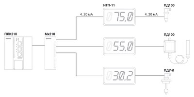Прибор выводит на индикацию значения с датчиков, выходов цифро-аналоговых преобразователей терморегуляторов, программируемых реле, программируемых логических контроллеров, токовых сигналов управления частотных преобразователей и прочего оборудования.