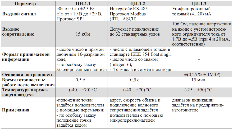 | Отображаемые числа | от «-1999» до «9999» с произвольным положением десятичной точки |