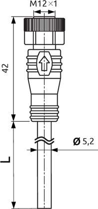 WS12-5S-2V Кабель электрический с разъемом М12х1 (розеточная часть, прямой разъем, 5 контактов, ПВХ, 2 метра, IP67)
