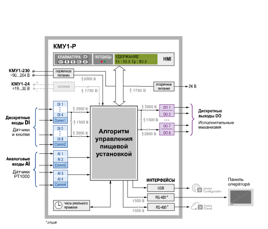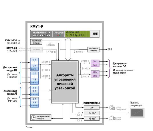 - КМУ1-230.ВДП.Р – регулятор с питанием 230 В с алгоритмом пастеризатора