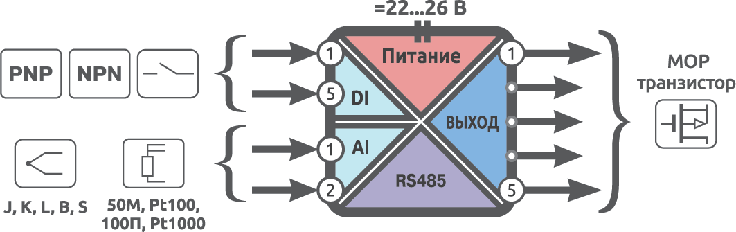 | Типы подключаемых датчиков | PNP / NPN |