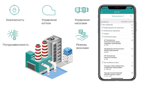 Для оперативного контроля, координации технологического процесса с использованием передачи информации между котельной и диспетчерским пунктом используется визуализация. Она может быть реализована на мнемосхемах в облачных сервисах, SCADA-системах и т.д. Для удобства представления информации о состоянии котельной используют «местную» визуализацию с выводом на панель оператора. При необходимости визуализации котельной предлагается использование линейки сенсорных панелей оператора СП3хх.