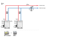 Тп – температура в подающем трубопроводе Тоб – температура в обратном трубопроводе Рп – давление в подающем трубопроводе PDS – реле перепада давления PS – реле давления |