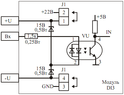 | - трехканальный модуль ввода дискретных сигналов DI3 | |