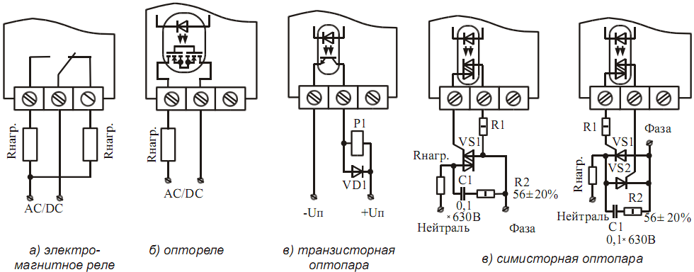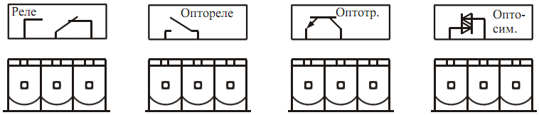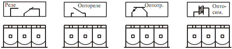 электромагнитные реле, оптореле, транзисторные оптопары, симисторные оптопары (тип дискретных выходов по заказу) |