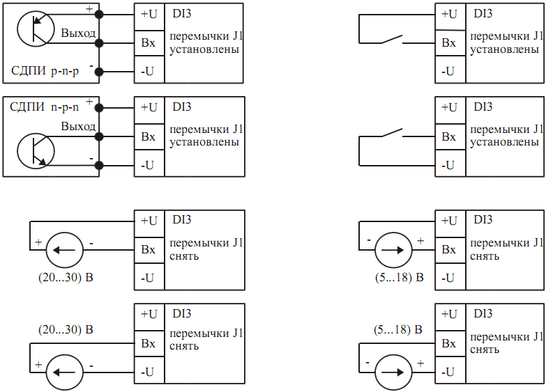 | Дискретные входы DI3 | универсальные дискретные входы с питанием датчика |