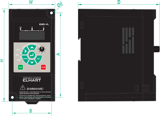 EMD-VL – 0015 S Преобразователь частоты ELHART, векторная серия (1,5кВт, 7А, 220В, векторное и U/f управление, съемный пульт, встроенный ПИД-регулятор, RS-485 Modbus RTU), серия EMD-VL