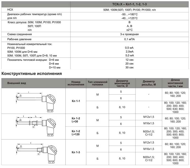 Термометры сопротивления ТСХr.Х–Кл1-1, 1-2, 1-3