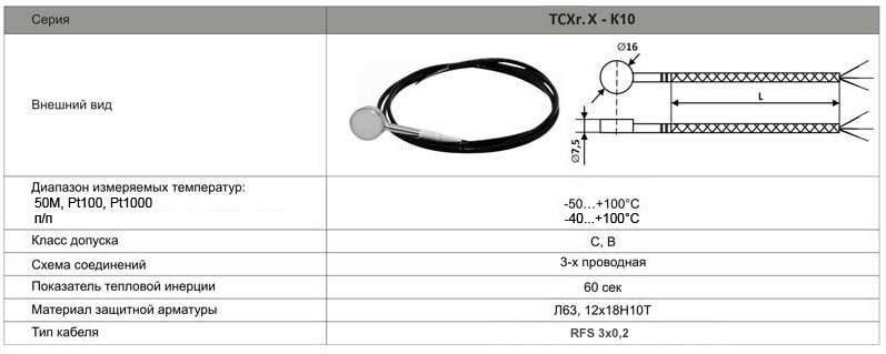 Длина кабеля L,м (3-х проводная схема соединения): 0,2; 0,5; 1,0; 2,0; 3,0; 4,0