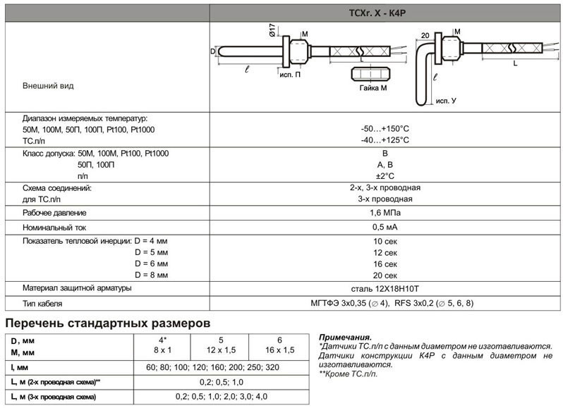 Термопреобразователь сопротивления ТСХr.Х-К4Р