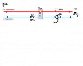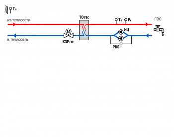 | Тобр | Датчик температуры теплоносителя в обратном общем трубопроводе | ТО ГВС | Теплообменник контура ГВС |