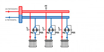 | PDS | Датчик перепада давления на насосах | НП | Насос подпитки контура |