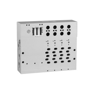 Выход в дно обозначает расположение выходных портов сжатого воздуха на той стороне пневмоострова, которая является противоположной по отношению к распределителям. Такая модификация удобна при монтаже пневмоострова в дно шкафа управления или на его боковую стенку. При этом все пневматические подключения оказываются снаружи шкафа, а электрические подключения, блок управления и распределительные клапаны — внутри шкафа.