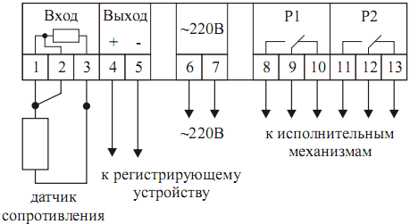 - настраивать режим срабатывания выходных реле для обеспечения работы в режиме двух- или трехпозиционного регулятора.