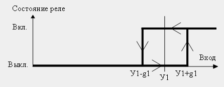 Рис. 1. Сигнализация "выше уставки У1" с гистерезисом ±g1 (двухпозиционный регулятор)