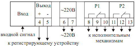 - настраивать режим срабатывания выходных реле для обеспечения работы в режиме двух-или трехпозиционного регулятора.